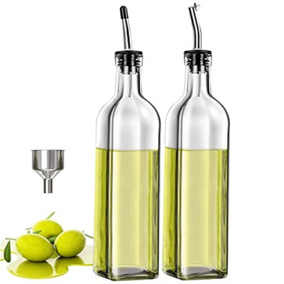 | Nombre del producto | 500 ml 2pcs cocina verde oscuro con oleoducto de acero inoxidable embudo cuadrado material blanco alto vidrio botella de aceite de oliva para cocinar |
